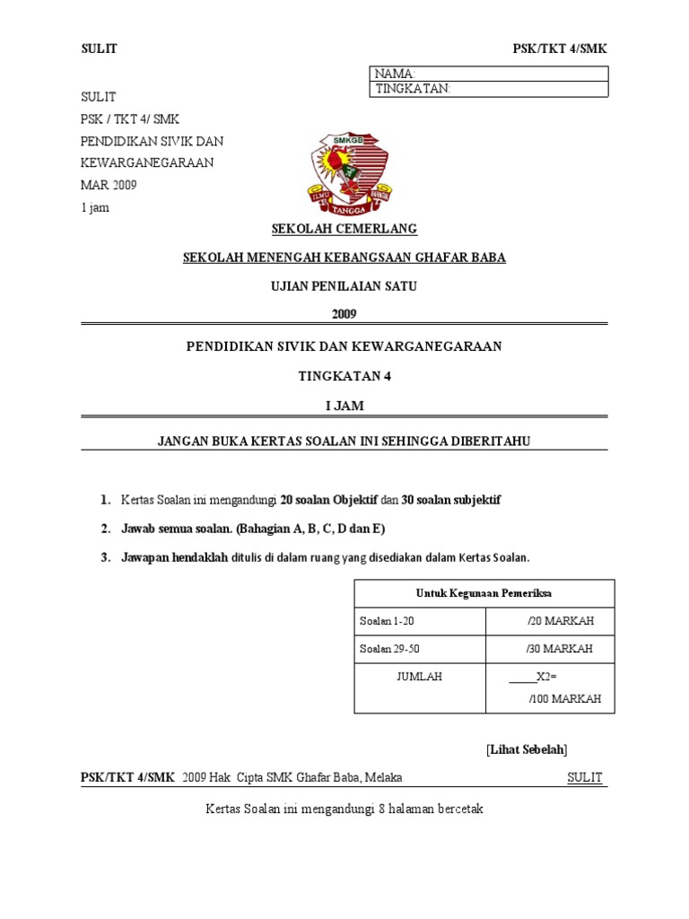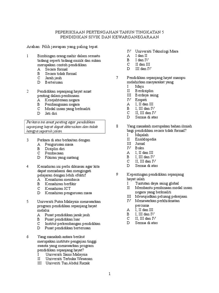 Peperiksaan Pertengahan Tahun Sivik Tingkatan 4 from reader015.docslide.net Peperiksaan akhir tahun format terbaru kertas1 kssm tingkatan 4. Sistem pendidikan jepun percaya bahawa mengharuskan pelajar membersihkan diri setelah mereka mengajar mereka untuk bekerja dalam satu pasukan dan membantu satu sama lain. So please help us by uploading 1 new document or like us to download Pendidikan sivik dan kewarganegaraan tingkatan satu. Soalan peperiksaan awal tahun pendidikan sivik dan kewarganegaraan tingkatan 5 ujian bulan mac 2018. Peperiksaan akhir tahun sains tingkatan 4 2014 kertas 2. Soalan sivik akhir tahun f4. Peperiksaan akhir tahun 2015 pjk tingkatan 4 1 pendidikan pergerakan 01.