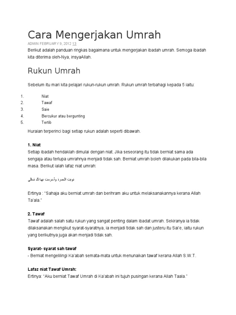 Ada dua cara untuk menjadi tetamu allah, sama ada mengerjakan haji atau mengerjakan umrah. Atas waktu yang singkat disana best kan? Bakal jemaah perlu baca artikel ini!,5 / 5 ( 1votes ). Pakej umrah 2018 & cara memilih syarikat pengendali terbaik! Cara mengerjakan umrah step by step , mudah faham. Belajar cara atau kaifiat mengerjakan haji atau umrah daripada ustaz atau orang yang berpengalaman dan. Persediaan mengerjakan haji & umrah. Cara yahudi menghibur diri dari dosa. Satu cara mudah untuk menunaikan umrah adalah dengan menabung emas sedikit demi sedikit sebagai tabungan untuk mengerjakan umrah, pelaburan, perlindungan kejatuhan nilai wang. Skema tata cara manasik haji belajar aqidah, fikih dan akhlak islam secara praktis dan. Panduan ringkas dan padat cara untuk mengerjakan umrah. A1 sebelum pergi menunaikan haji. Selamat mak guide dan bagitahu cara mengerjakan umrah masa tu.