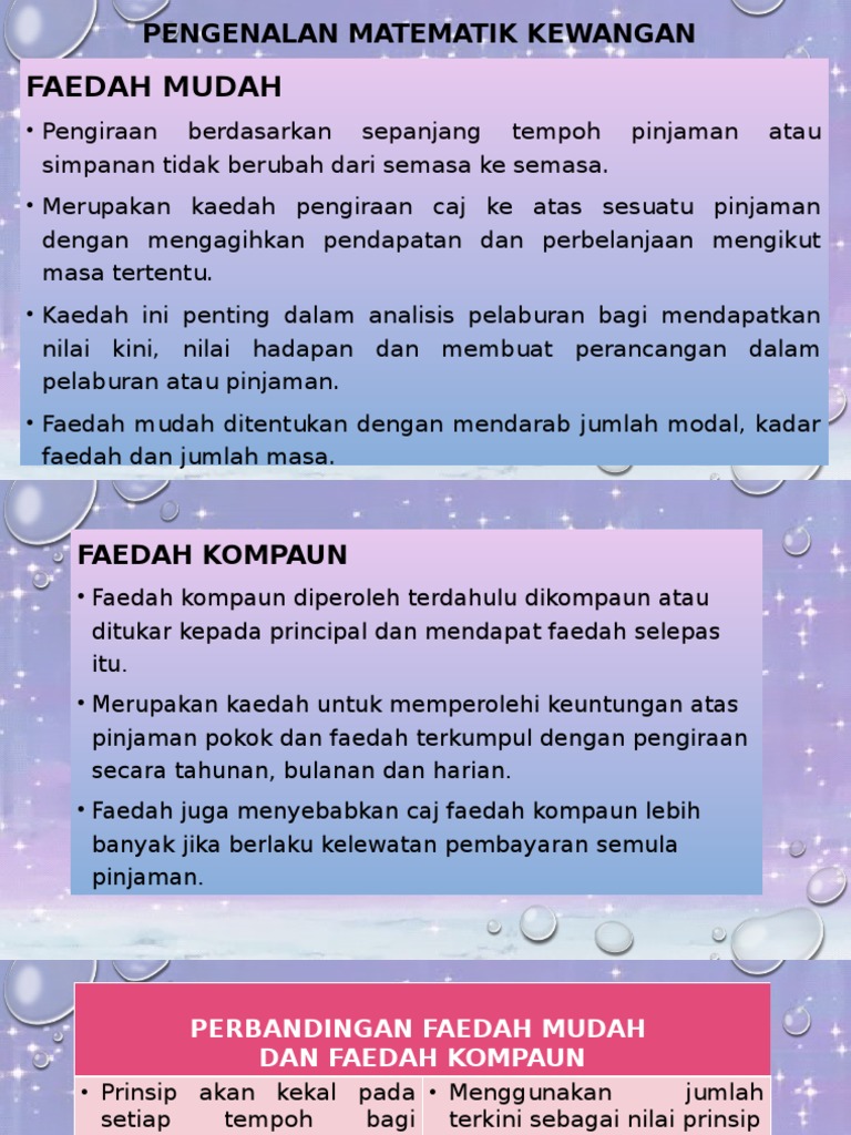 Kelebihan Faedah Kompaun Berbanding Faedah Mudah : Matematik Tingkatan 3 Cutted3 Flip Ebook Pages 1 36 Anyflip Anyflip : Apakah perbezaan antara faedah sederhana dan faedah kompaun selama dua tahun dengan sejumlah wang sebanyak 4 peratus ialah rs 160 apakah kelebihan kepentingan kompaun berbanding kepentingan mudah?. Tahukah anda apakah faedah, kebaikan dan kelebihan amalan berkhatan yang jarang orang kita perkatakan? Selepasitu, faedahkompaun mengambil kiradanmeningkatpadasetiaptempohny a. Faedah kompaun ialah faedah diatas faedah, contohnya katakanlah anda memasukkan uang ke bank 1,000 dengan faedah simpanan 5%, maka satu tahun lagi uang anda akan menjadi 1,050 dan tahun kedua akan mejadi 1,102.5 karena. Faedah mudah jarang digunakan dalam pinjaman dan deposit bersama kerana nilai masa wang. Eppe3023 ekonomi antarabangsa (faedah mutlak & faedah berbanding) group 14подробнее.